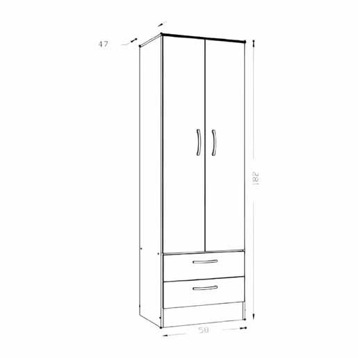El Placard Ricchezze Tana Eco es la solución ideal para organizar tu ropa y accesorios de manera práctica y elegante. Con 2 puertas y 2 cajones, ofrece espacios diferenciados para colgar, guardar y mantener todo en orden. Su diseño funcional se adapta a distintos ambientes y estilos de decoración.