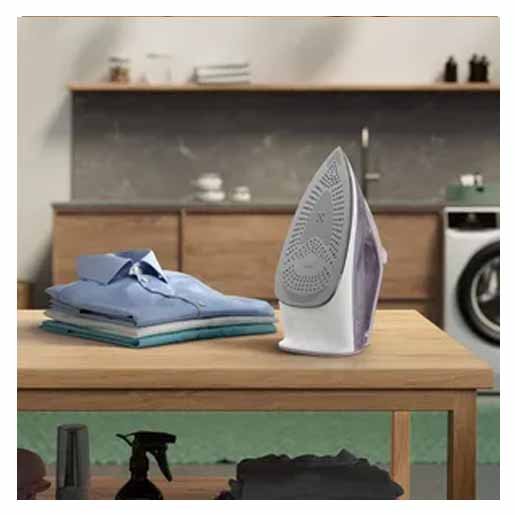 Su base Glissium exclusiva de cerámica garantiza un deslizamiento suave sobre las telas, reduciendo la fricción y ayudando a conservar tus prendas por más tiempo.