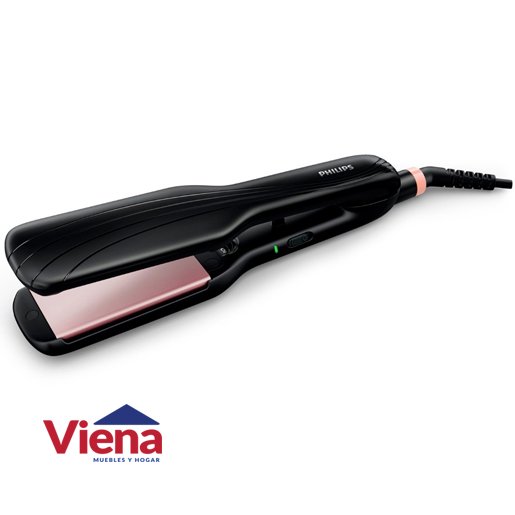 Diseñado especialmente para un modelado fácil y rápido del cabello grueso y largo con placas un 40% más anchas*. Las placas con revestimiento cerámico con cuidado iónico garantizan un deslizamiento suave para obtener un resultado brillante