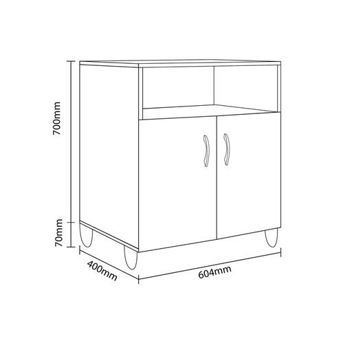 Porta microondas alfa 2 puertas y 3 estantes. Melamina de 15mm. No Incluye microondas, vasos, accesorios y adornos.