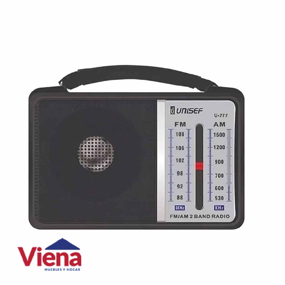 La Radio Unisef U-777 es un equipo compacto y funcional que te permite sintonizar tus emisoras favoritas en AM y FM. Su diseño práctico y ligero la hace ideal para usar en el hogar, oficina o cualquier lugar donde necesites entretenimiento y noticias al alcance de la mano.