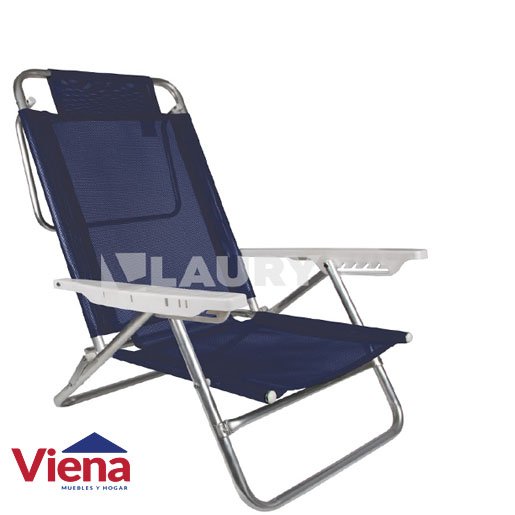Estructura de aluminio Caño 7/8 - Apoyabrazos plásticos - Reclinable, 6 posiciones - Medidas: Ancho total: 62 cm Altura total: 86 cm Del piso al asiento: 24 cm Respaldo: Alto 70 cm Ancho 50 cm Asiento: Profundidad 40 cm Ancho 45 cm - Peso del producto: 2.40 kg