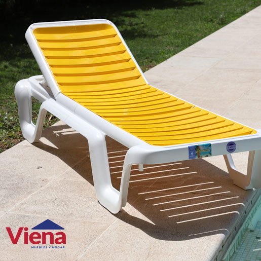 Reposera Plastica VOSS 2000 Hawaii Blanca y Amarilla