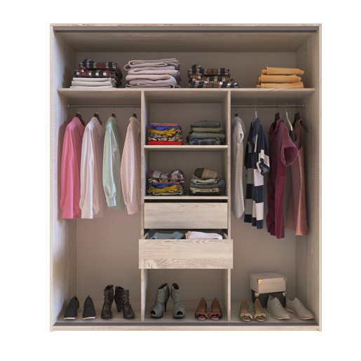 Roperos reflex 3 puertas corredizas con espejo en puerta central. Incluye 2 cajones y 5 estantes. Correderas telescópicas, guía superior e inferior de puertas en aluminio con sistema de rodamiento con amortiguación y de altura regulable. Perfilería lateral de puertas y percheros en aluminio. Fabricado en melamina de alta calidad texturada y lisa en 15mm MDP.