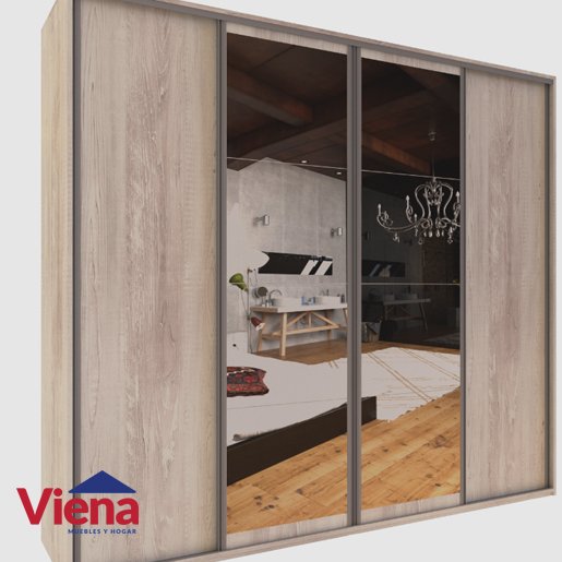 Ropero / Placard DELOS 4 Puertas Corredizas Con Espejo 2.47×2.20 Pino.DLE364PC
