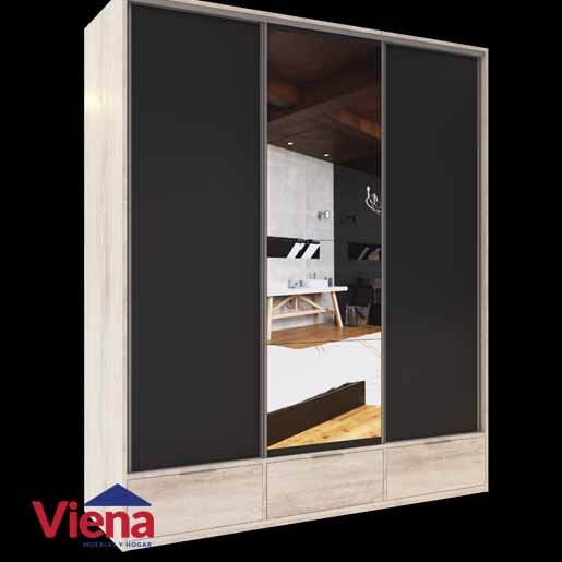 Con el Ropero Duo 3 puertas corredizas de Delos, maximizás espacio sin sacrificar estilo. Sus espejos en la puerta central y 3 puertas inferiores volcables, junto a sus 2 cajones, aportan versatilidad y orden a tu habitación.