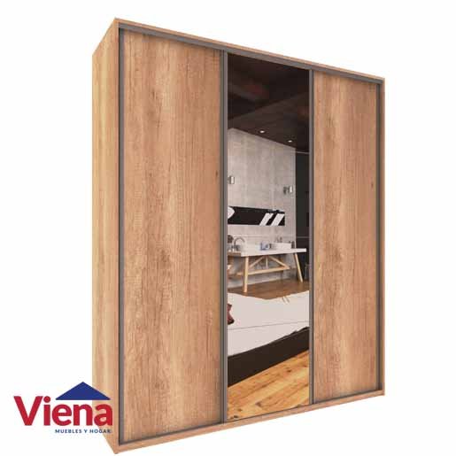 Ropero / Placard DELOS 3 Puertas Corredizas Con Espejos 1.83×2.10 Roble Nebraska Natural