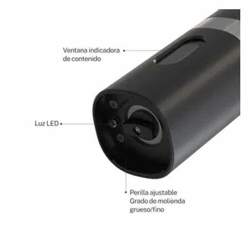 Muele fácilmente pimienta y sal de gruesa. Incluye