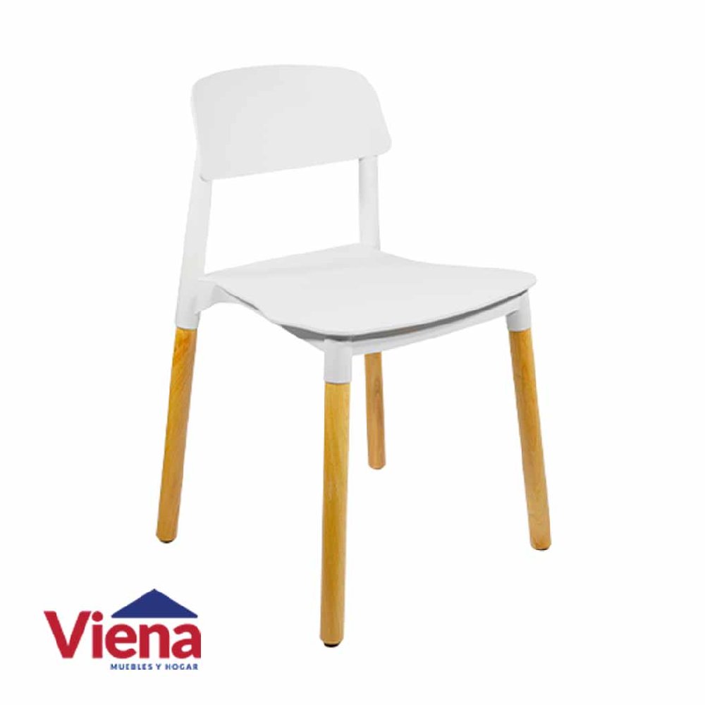 Silla de diseño moderno y funcional, ideal para comedor, cocina, oficina o espacios comerciales. Combina una estructura plástica resistente con patas de madera natural, ofreciendo durabilidad y estilo.