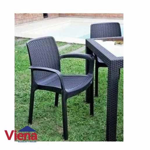 Silla simil rattán plástica. Concebida para uso en hogares, jardines e instalaciones hoteleras. Uno de los productos mas novedosos e innovadores en el mercado de fabricación local.