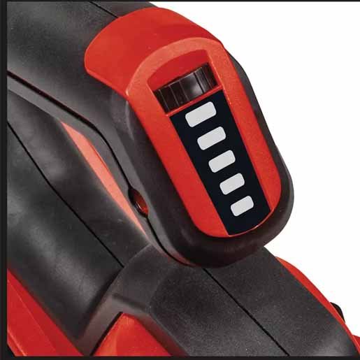 Con el soplador universal sin cable Einhell GE-UB 18/250 Li E-Solo hay orden en la casa y el jardín - y en cada rincón, gracias a la libertad sin cable. El soplador sin cable pertenece a la familia Power X-Change; para su funcionamiento se necesita una batería de 18 V. Las baterías de la familia de sistemas pueden utilizarse en más de 200 aparatos Einhell, ya sea en el jardín o en el taller. El tubo de soplado de varias piezas puede utilizarse para diversas aplicaciones en el hogar y el jardín, por ejemplo como soplador de hojas con un tubo de soplado largo, como soplador de taller con un tubo de soplado medio o como ayuda de encendido de parrillas con un tubo de soplado corto de precisión. El control electrónico de la velocidad garantiza el ajuste necesario. La pantalla LED informa de un vistazo sobre la velocidad ajustada. La empuñadura blanda garantiza un buen agarre y un trabajo sin fatiga. El soporte de pared integrado permite guardarla fácilmente. Para obtener resultados óptimos,