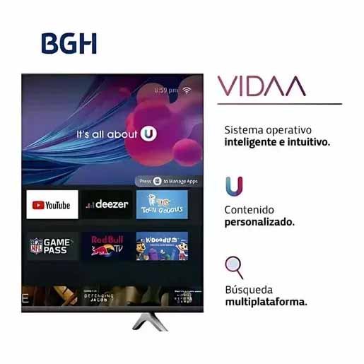 Elección perfecta para quienes buscan calidad y funcionalidad en un solo dispositivo. Con su sistema operativo Vidaa, disfrutarás de una experiencia de uso intuitiva y personalizable, permitiéndote acceder fácilmente a tus aplicaciones favoritas como Netflix, Prime Video, YouTube y Disney+. Su pantalla LED ofrece una resolución HD, ideal para ver tus series y películas con claridad.