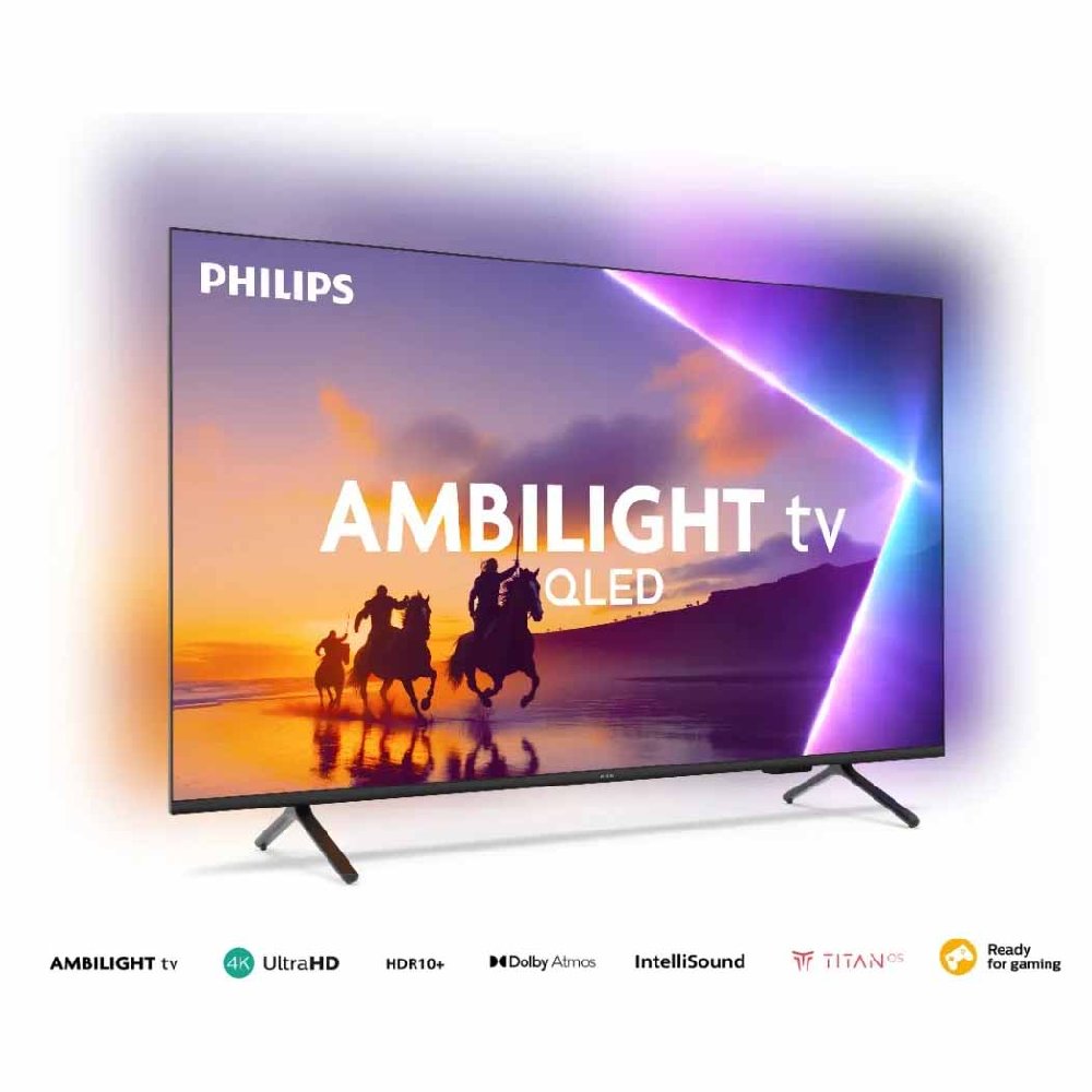 Su característica distintiva es el sistema Ambilight, que proyecta iluminación ambiental en las paredes según el contenido en pantalla, generando un efecto inmersivo único y una experiencia visual más envolvente.