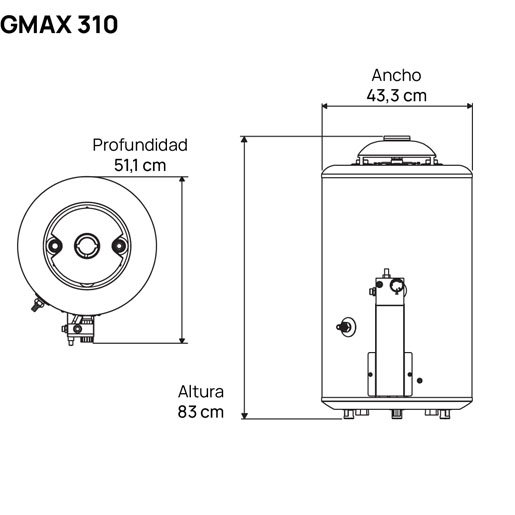 Termotanque Coppens Gmax 310 50L Gas Natural Reversible Alta Recuperacion