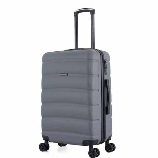Material: 100% abs. Ruedas: 4 dobles con movilidad 360°. Asas: 1 superior, un lateral y 1 retráctil. Compartimentos: Separador con bolsillo con cierre y broches con elásticos para contener el equipaje. Seguridad: Traba de 3 digitos incorporado.