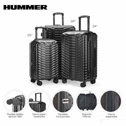 La valija Hummer de 28 pulgadas combina resistencia, funcionalidad y diseño moderno. Fabricada en polipropileno rígido, ofrece una estructura ligera y durable, ideal para viajes largos o equipaje voluminoso. Su interior forrado y dividido facilita una organización eficiente del contenido.