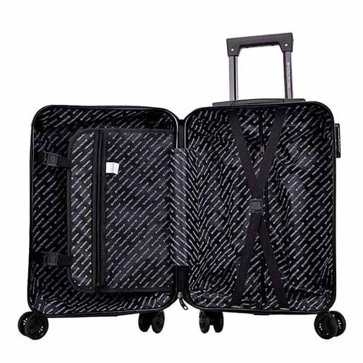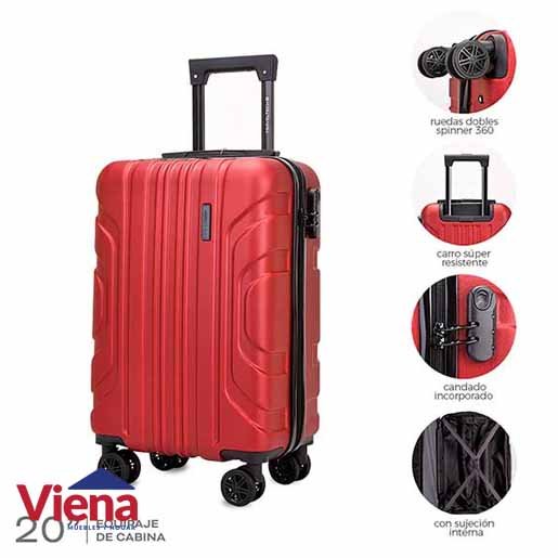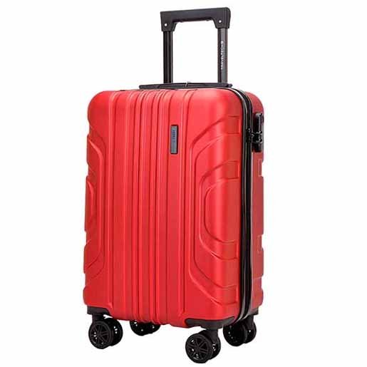 Carry On Travel Tech 27426. Color: Rojo. Confeccionada en ABS, carcasa de alta resistencia y ultra durable resistente a ralladuras. De diseño ligero, con 8 ruedas con movilidad 360°. Contiene un asa superior de transporte y un asa retráctil hacia arriba. El interior de la valija está forrado y contiene un separador con bolsillo de red con cierre, broches con elásticos para contener el equipaje. Posee sistema de seguridad de tres dígitos.Altura de las ruedas 5 cm. Medidas aproximadas: 45 cm de alto x 35 cm de ancho x 20 cm de profundidad
