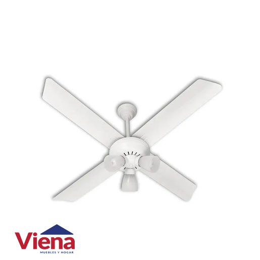Ventilador de techo con palas de acero, color blanco, con luminaria incluida.