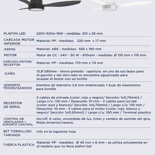 Ventilador Techo Indelplast IVT474″ ABD Luz Led Negro