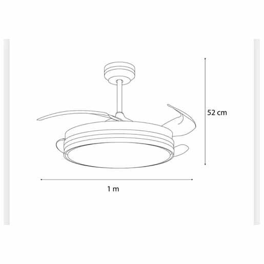 Este ventilador es moderno, elegante y funcional, ofreciendo un ambiente fresco sin ruidos molestos y con un bajo consumo energético. Su control remoto permite ajustar la velocidad y la luz fácilmente, sin moverte de tu lugar.