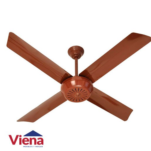 Ventilador de techo con 4 palas de acero, color marrón.