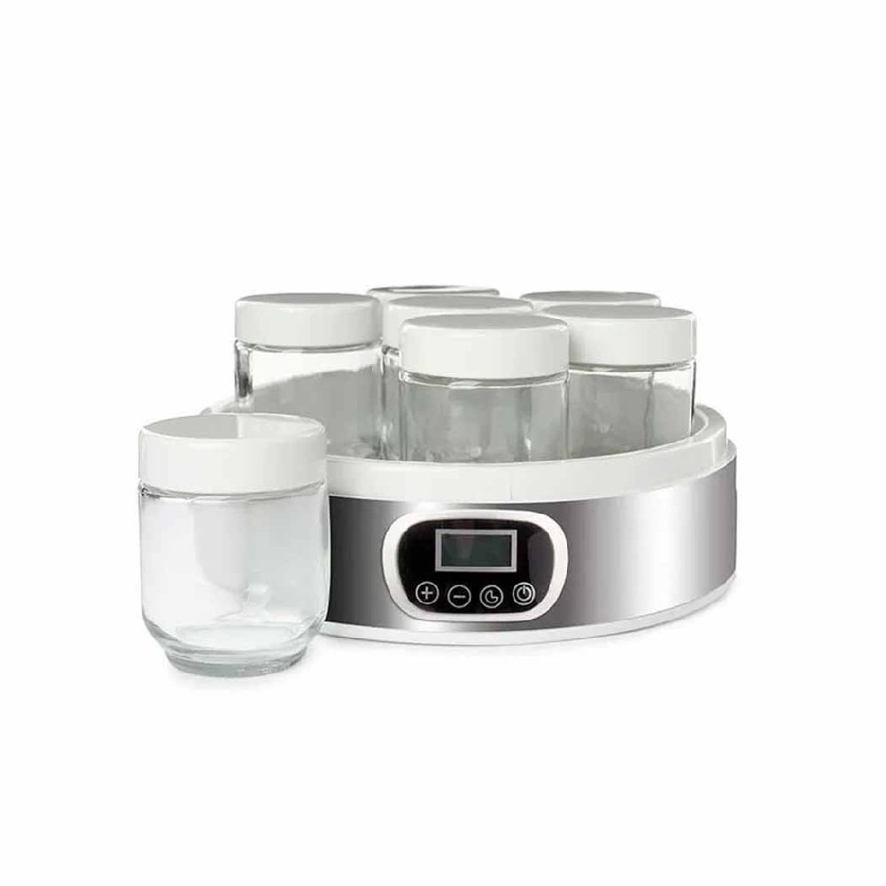 La Yogurtera Smartlife SL-YM2305 es la opción ideal para quienes buscan preparar yogures caseros de manera simple, saludable y económica. Con una capacidad total de 1.4 litros y equipada con 7 frascos de vidrio de 200 ml, permite elaborar porciones individuales para toda la familia, manteniendo siempre un sabor fresco y natural. Su diseño compacto, junto con su panel digital táctil, facilita un uso cómodo y preciso en cualquier cocina.